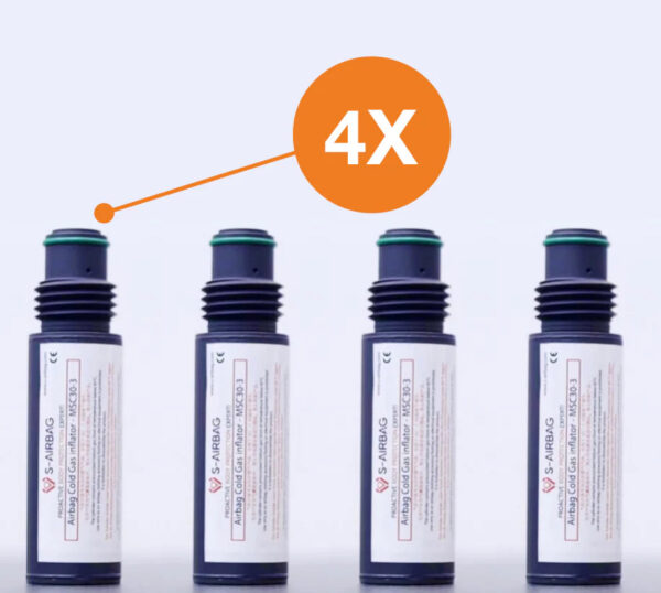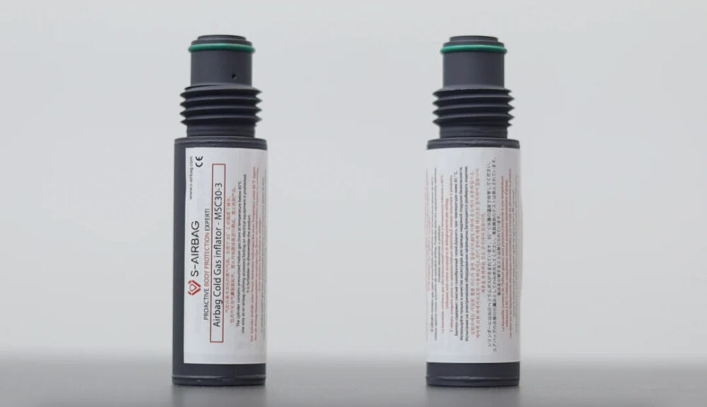 The gas inflator deploys the airbag of S-airbag device in case of fall. It is for single use only and must be replaced after each inflation.